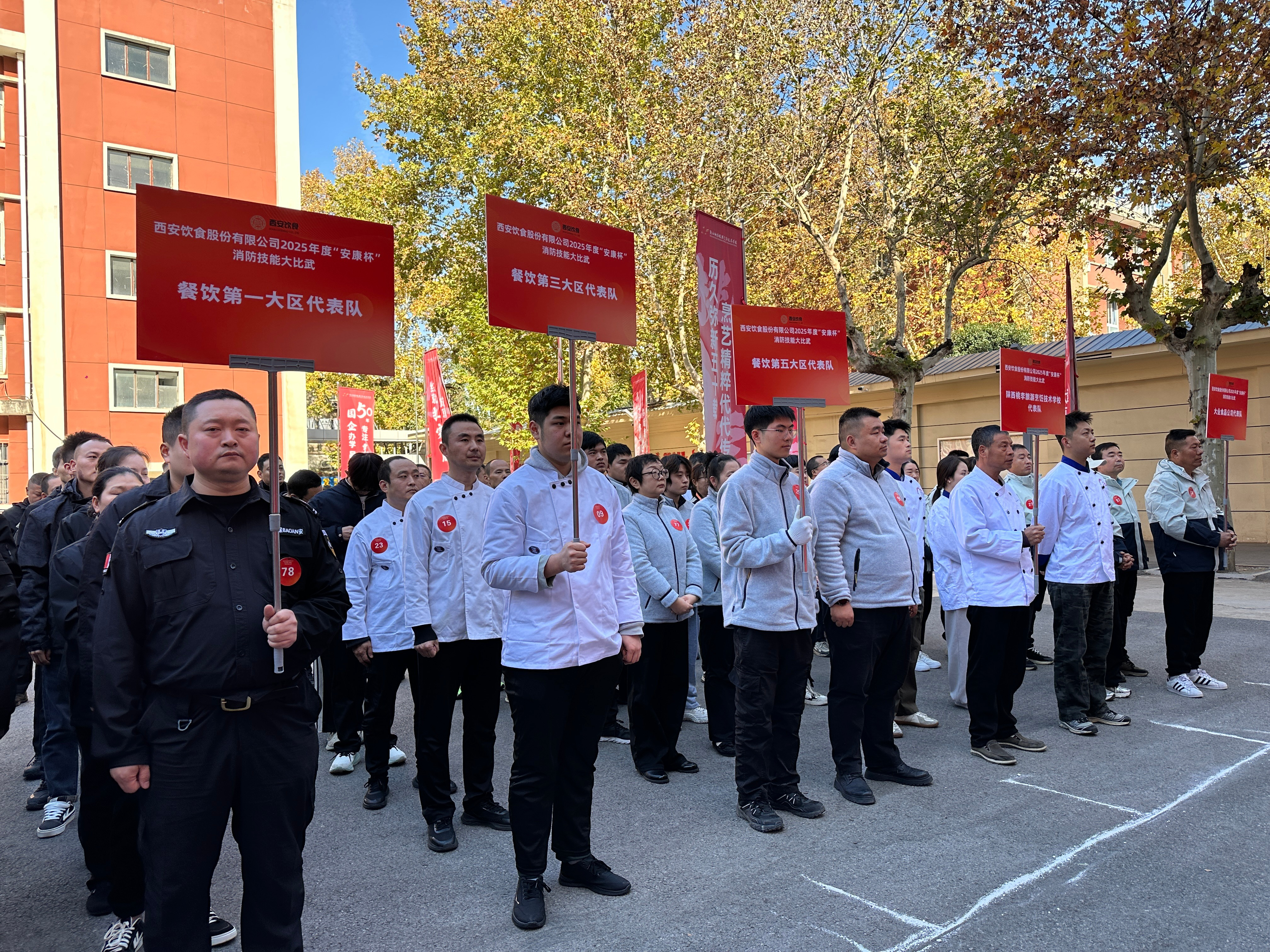 11月19日,西安飲食股份有限公司2025年“安康杯”消防技能大比武在陜西桃李旅游烹飪學(xué)校圓滿(mǎn)舉行。此次以“筑牢安全防線,錘煉消防硬功”為主題的比拼,旨在強(qiáng)化全員安全意識(shí)與應(yīng)急能力,既是實(shí)操能力的集中檢閱,更是公司“守護(hù)民生福祉”理念的生動(dòng)實(shí)踐。公司黨委書(shū)記、董事長(zhǎng)劉勇,總經(jīng)理馮凱等領(lǐng)導(dǎo)及各單位負(fù)責(zé)人、一線員工共130余人齊聚現(xiàn)場(chǎng),見(jiàn)證賽場(chǎng)激烈角逐。