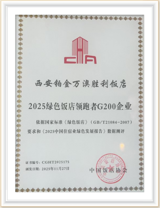 近日,由中國飯店協(xié)會主辦的2025中國酒店與餐飲業(yè)品牌發(fā)展大會圓滿落幕,西旅股份旗下鉑金萬澳·勝利飯店憑借在綠色運營等九大維度的突出表現(xiàn),榮登“2025綠色飯店領跑者G200企業(yè)”榜單,成功躋身引領行業(yè)綠色發(fā)展的領跑陣營。